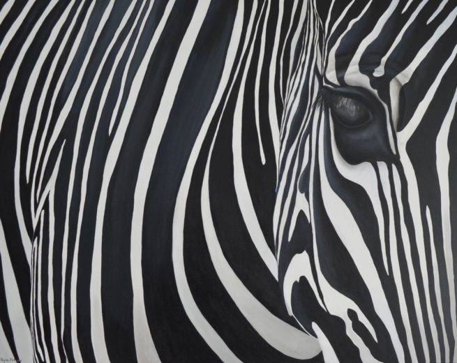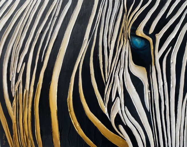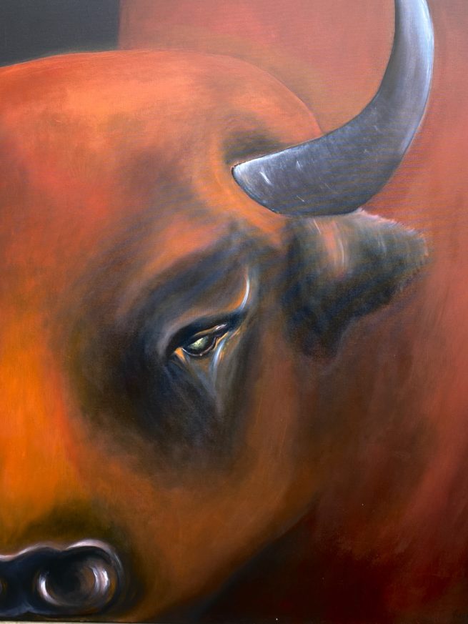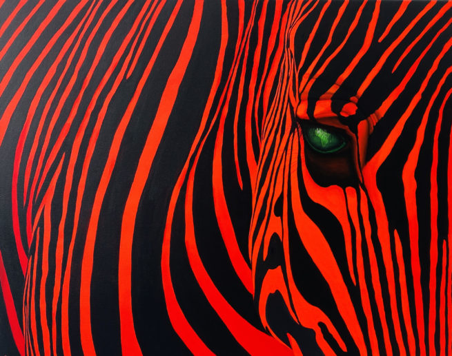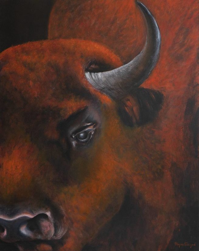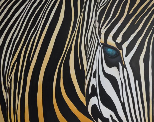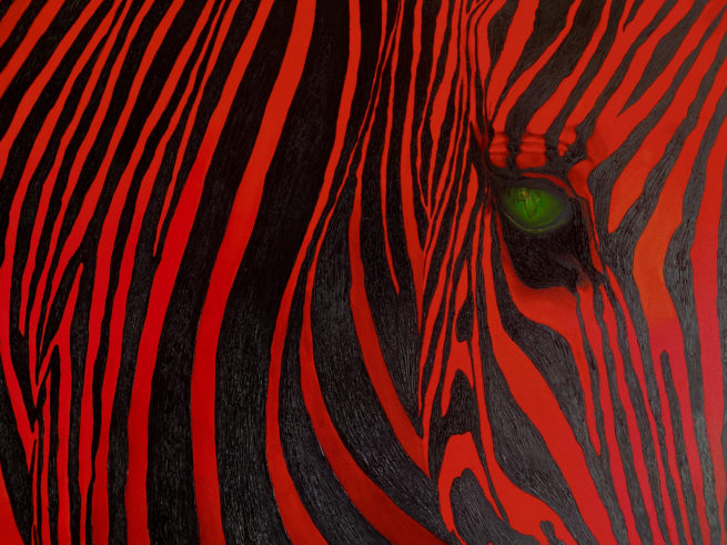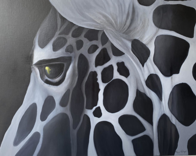 L’animal semble questionner l’humain qui contemple le tableau, en lui demandant: « Que fais tu avec la Terre où je suis né, le territoire où je vis et où vivaient mes ancêtres ? » . La pupille mystérieuse attire le regard, elle représente le continent où vit l’animal.